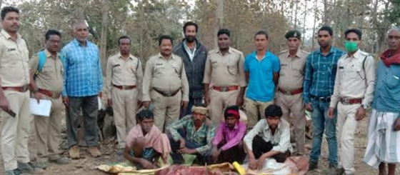 सांभर का शिकार, मांस और शिकार की सामग्री के साथ 4 गिरफ्तार
