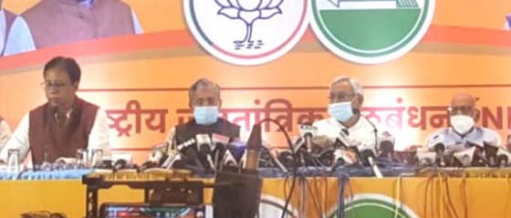 उन्होंने कहा कि आवश्यकता पड़ेगी तो हम चुनाव आयोग को लिखकर देंगे, कि एनडीए से जुड़े सिर्फ चार दल ही प्रधानमंत्री के चित्र का इस्तेमाल कर सकते हैं, अन्य किसी को प्रधानमंत्री का चित्र इस्तेमाल करने का अधिकार नहीं होगा. संख्या चाहे जिसकी जितनी आए, लेकिन मुख्यमंत्री नीतिश कुमार ही बनेंगे. इसके लेकर किसी को कोई दुविधा नहीं होनी चाहिए. इस दौरान भाजपा के प्रदेश अध्यक्ष संजय जायसवाल ने कहा कि नीतीश कुमार के नेतृत्व में ही भाजपा चुनाव लड़ेगी और सरकार बनाएगी, इसमें किसी प्रकार के शक की गुंजाइश नहीं है. संजय जायसवाल ने कहा कि एनडीए के नेता चाहते हैं कि रामविलास पासवान जल्द स्वस्थ हो जाएं, लेकिन बिहार में भाजपा नीतीश कुमार के नेतृत्व में चुनाव लड़ेगी. इस बारे में पूरी स्पष्टता है.