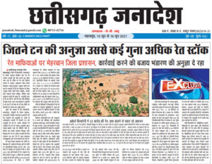 महासमुंद. नदी-नालों से रेत के अवैध उत्तखनन, परिवहनऔर भंडारण के संबंध में “छत्तीसगढ़ जनादेश” की खबरों का बड़ा असर हुआ है. देर से ही सही, प्रशासन जागा है. गुरुवार शाम जनसंपर्क विभाग महासमुंद द्वारा जारी समाचार में बताया गया है कि कलेक्टर ने महासमुंद विकासखण्ड में रेत के अवैध उत्खनन, परिवहन, भण्डारण की रोकथाम के लिए संयुक्त जांच दल का गठन किया है. जारी समाचार इस प्रकार है… माननीय ग्रीन ट्रिब्यूनल द्वारा छत्तीसगढ़ में वर्षा काल में 10 जून 2021 से 15 अक्टूबर 2021 तक गौण खनिज रेत का नदी-नालों से उत्खनन एवं परिवहन प्रतिबंधित किया है.