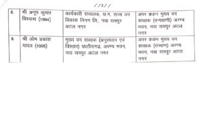 भारतीय वन सेवा के 9 अधिकारियों की नवीन पदस्थापना