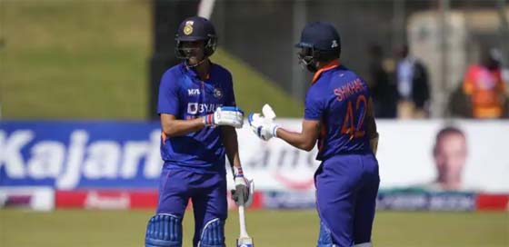 नई दिल्ली. हरारे में खेले गए पहले वनडे में टीम इंडिया ने जिम्बाब्वे को 10 विकेट से हरा दिया. इसके साथ ही तीन मैचों की सीरीज में 1-0 की बढ़त बना ली. जिम्बाब्वे की टीम पहले खेलने के बाद सिर्फ 189 रन ही बना सकी थी. जवाब में टीम इंडिया ने 30.5 ओवर में ही लक्ष्य का पीछा कर लिया. ओपनर शुभमन गिल ने नाबाद 82 और शिखर धवन ने नाबाद 81 रन बनाए. इससे पहले, टॉस हारकर पहले बल्लेबाजी करने उतरी जिम्बाब्वे टीम की शुरूआत बेहद खराब रही. उन्होंने 10.1 ओवर में 31 रन पर चार महत्वपूर्ण विकेट खो दिए. इस दौरान, इनोसेंट काइआ (4), तदिवानाशे मारुमानी (8), सीन विलियम्स (5), वेसले मधेवेरे (1) और सिंकदर रजा (12) जल्द ही पवेलियन लौट गए.