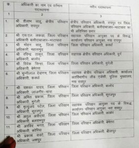 रायपुर. राज्य शासन द्वारा विभिन्न क्षेत्रीय परिवहन अधिकारी, जिला परिवहन अधिकारी और परिवहन निरीक्षकों को स्थानांतरित करते हुए नवीन पदस्थापना दी गई है. इस आशय का आदेश आज मंत्रालय स्थित परिवहन विभाग से जारी कर दिया गया है.