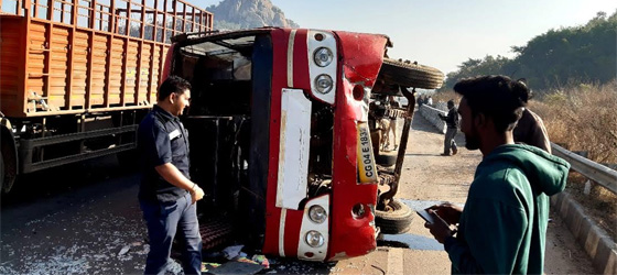 पिथौरा. नगर के समीप राष्ट्रीय राजमार्ग 53 डोंगरीपाली के पास साई ट्रेवल्स की एक बस अनियंत्रित होकर पलट गई. बस में कुल 5 लोग सवार थे. जिसमे एक घायल को प्रथम उपचार के बाद जिला अस्पताल महासमुंद भेजा गया है. जानकारी के अनुसार बुधवार सुबह करीब 9 बजे साई ट्रेवल्स की एक बस क्र cg 04 E 1832 सराईपाली से रायपुर जा रही थी तभी डोंगरीपाली के पास अनियंत्रित होकर सड़क के बीच डिवाइडर से टकरा कर पलट गई. घटना में कुल दो महिलाएं घायल हुई हैं.