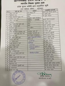 नगर पालिका परिषद बेमेतरा के नाम निर्दशन पत्र के लिए एआरओ अधिकृत