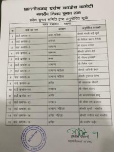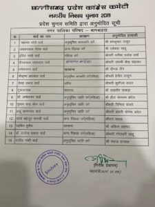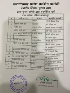 रायपुर. नगरीय निकाय चुनाव को लेकर देर रात कांग्रेस ने अपनी सूची जारी कर दी है. महासमुंद, बागबाहरा, बलरामपुर नगर पालिका और बसना, पिथौरा, तुमगांव नगर पंचायत के पार्षद प्रत्याशियों की देखिए सूची-