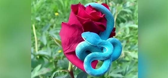 इस गुलाब के फूल को धीरे-धीरे घुमाया भी जा रहा है लेकिन सांप अपनी जगह से टस से मस नहीं होता. ऐसा लग रहा है जैसे सांप गुलाब से चिपक गया हो. कई सोशल मीडिया यूजर इसे बहुत खूबसूरत तो कई खतरनाक बता रहे हैं. फिलहाल सांप और गुलाब के इस वीडियो को सोशल मीडिया पर लोग काफी पसंद कर रहे हैं. मॉस्को जू के मुताबिक यह सांप सफेद आईलैंड पिट वाइपर की ब्लू वैराइटी है. विषैला पिट वाइपर उप प्रजाति इंडोनेशिया और पूर्वी तिमोर में पाया जाता है. अधिकांश सफेद-लैप वाले पिट वाइपर वास्तव में हरे होते हैं, जिनमें नीले रंग की किस्म काफी दुर्लभ होती है.
